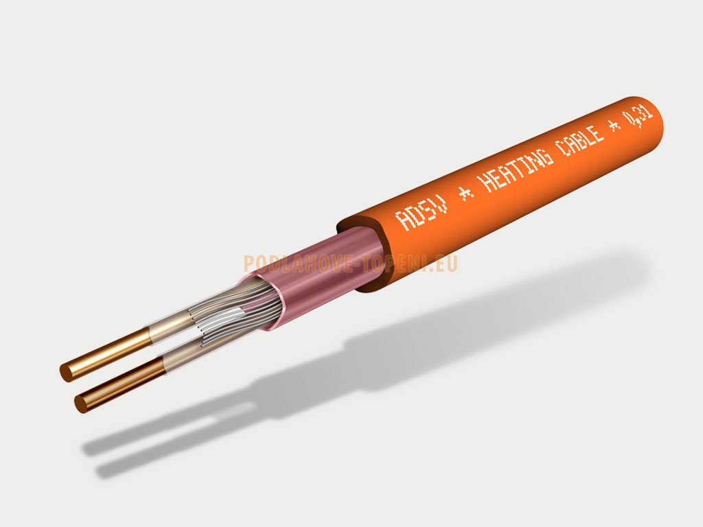 - Dvoužilové topné kabely ADSV s výkonem 7W/m pro novostavby, nízkoenergetické a pasivní stavby, domy, byty, určené do vrstvy flexibilního lepidla nebo pro zalití do samonivelační stěrky