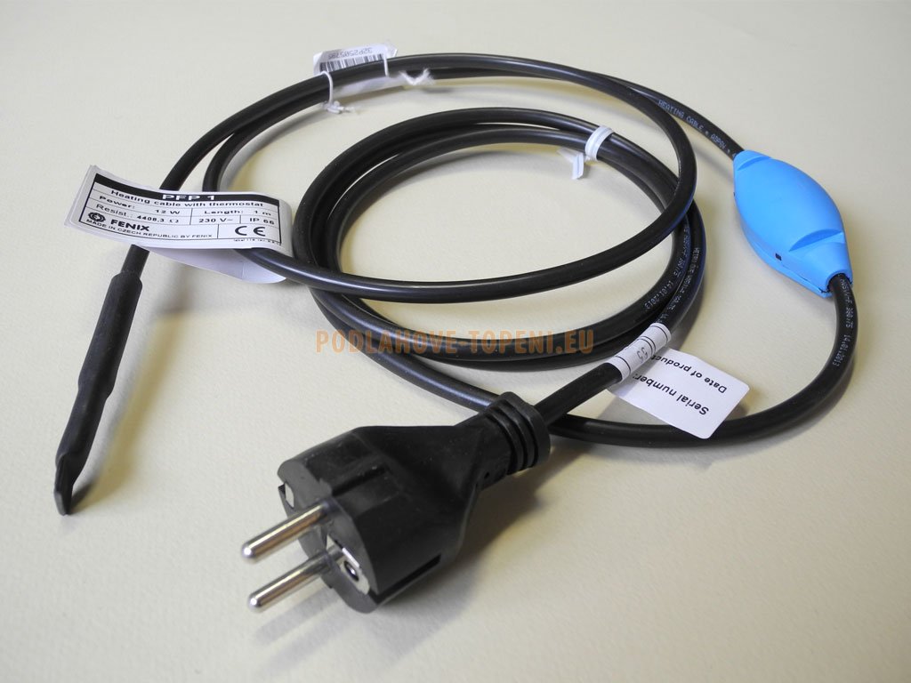 | Integrovaný termostat:: | ano - příložný, bimetalový, instalovaný mezi přívodním a topným kabelem |