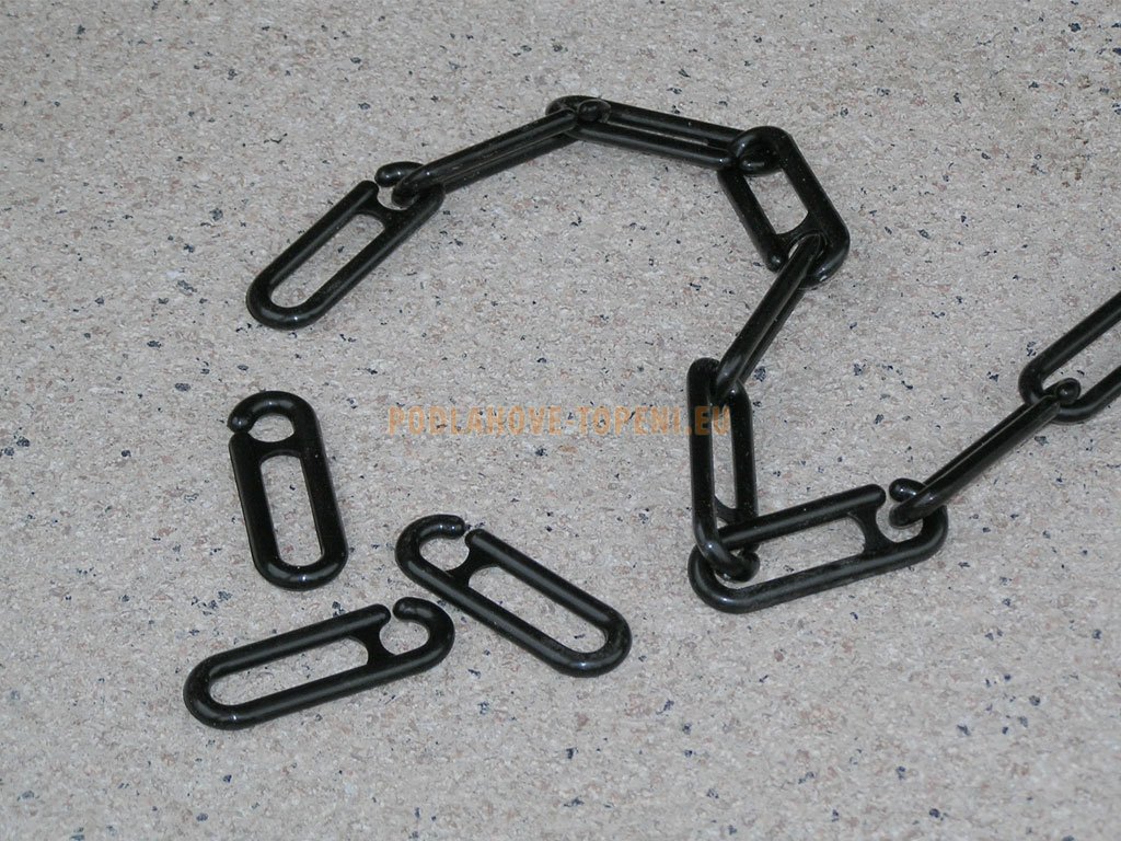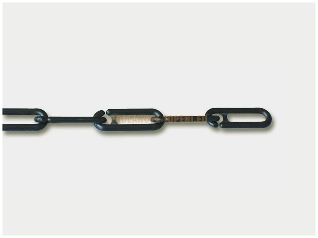 Plastový řetěz pro uchycení kabelu ve svodu. Kabel se k řetězu fixuje pomocí příchytek do svodu. Baleno po 10 m (220 ks článků řetězu). Materiál: mrazuvzdorný plast.